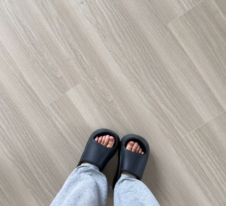 我家卧室的地面做的是实木地板,这种地板的颜色是接近实木的,看着颜值很高,